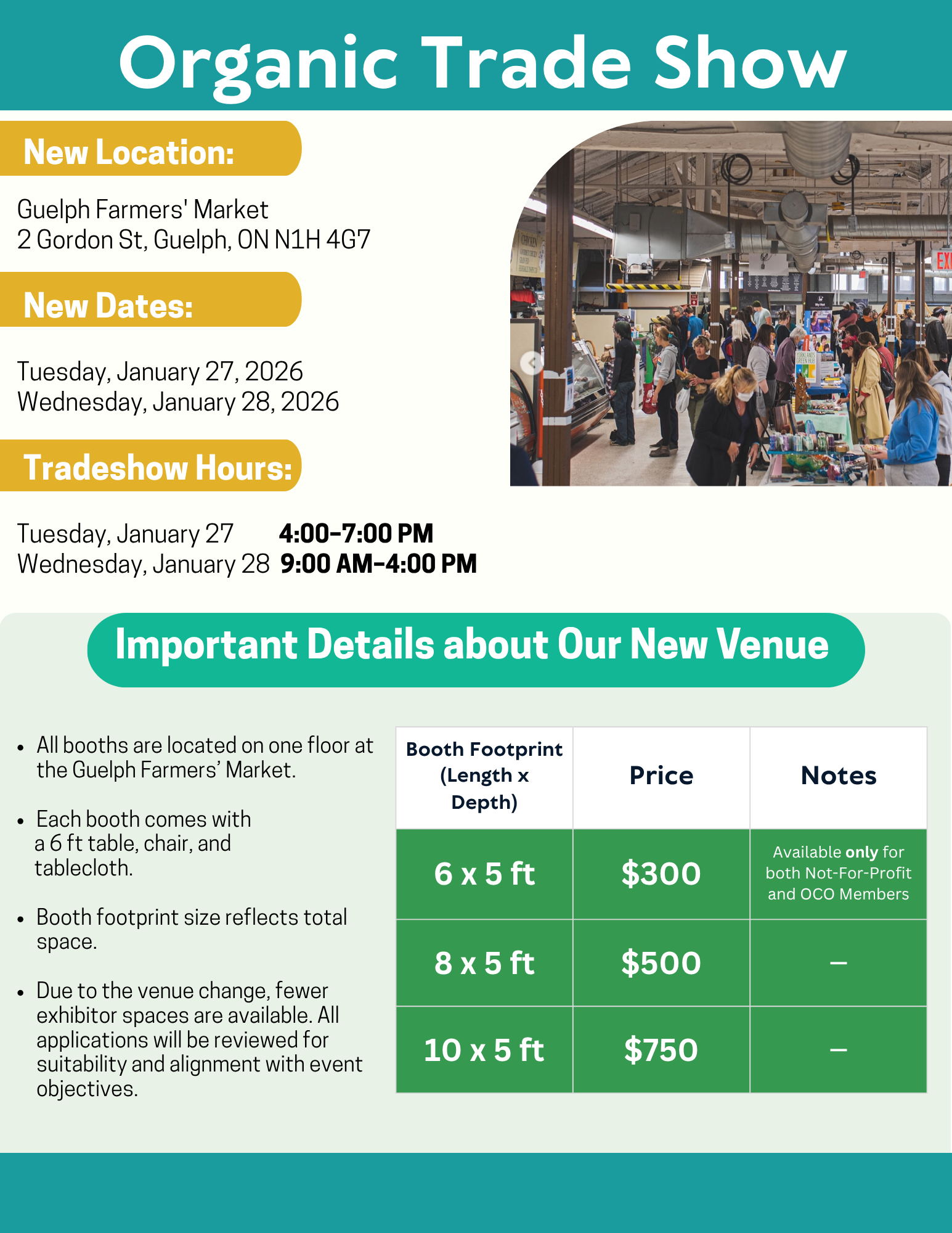 Showcase your products and connect with 1,000+ farmers, processors, retailers, and changemakers at Canada’s longest-running organic gathering.